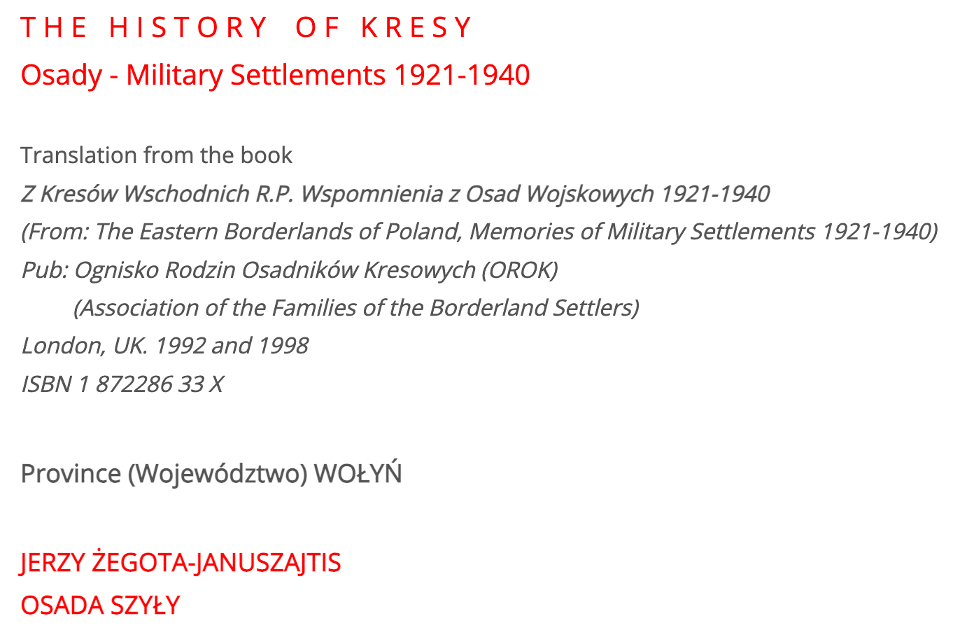 Read Maria Szuba-Tomaszewska’s memories of life in the Budowla Osada translated from Wspomnienia z Osad Wojskowych. It tells a moving story of Soviet invasion, crimes, removal of military settlements and deportation. She writes about the loss of family in Siberia and eventual return home to Wojcieszyn.