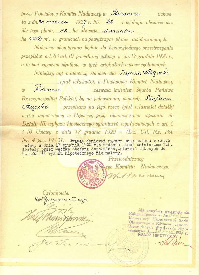 This law ended on 28 Dec 1923. A new law in March 1932 gave ex-soldiers the priority in purchasing land. Settlers in the 2 southern voivodeships were those who purchased land after 1932 in the framework of the land reform and officially were recognised as “cywilne osady”, civilian settlements, often called “kolonie”.