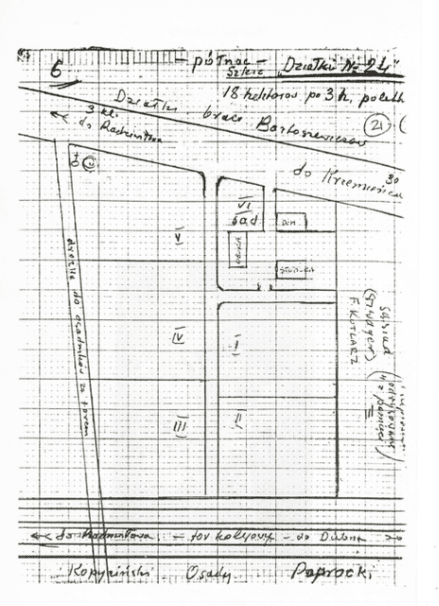 My plot, because this is what we called each farm, was located to the left of the Krzemieniec road to the town of Radziwiłłów. To the eastern side, my neighbour was Franciszek Kotlarz, my brother-in-law, and beyond him was Roman Święciński’s plot. On the western side, going towards Radziwiłłów, there was a plot that belonged to an invalid whom I did not know because he didn’t manage his farm on his own, but the leaseholder was Mr Zych, a retired police officer. Further on, there was the plot of Franciszek Chojnacki, and then of Józef Langer, and this was the last plot along the Radziwiłłów-Krzemieniec road.